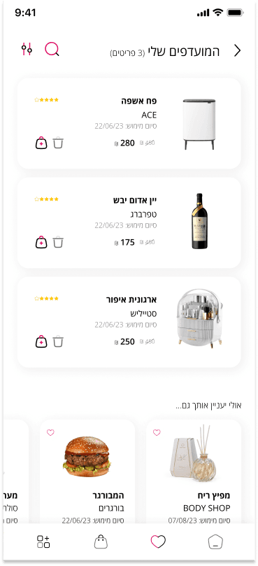 Users interested in exploring benefits within the app cannot save their searches in favorites or to a shopping cart. It's crucial to introduce an area where users can store desired benefits until they make a purchase decision.