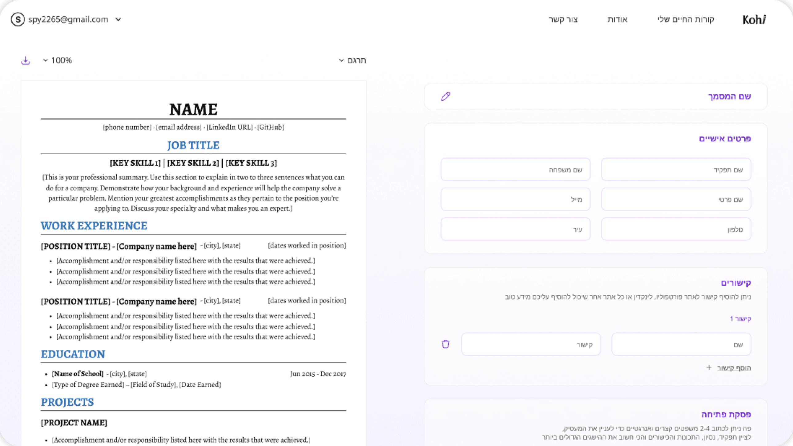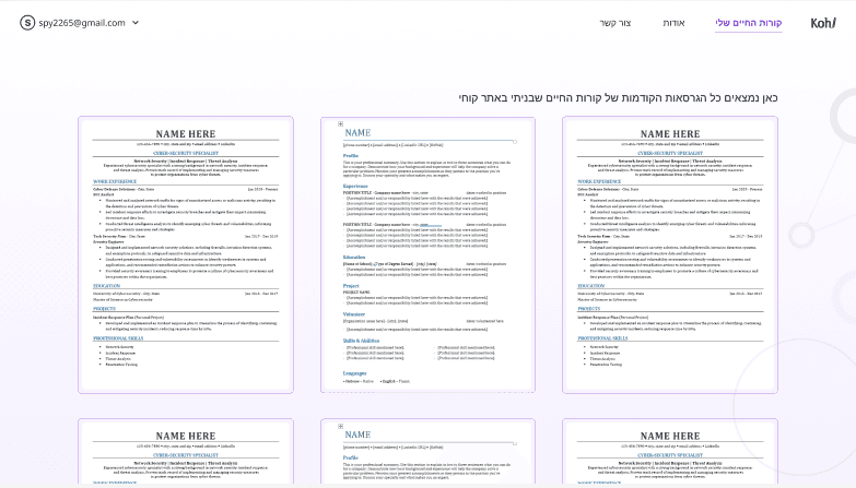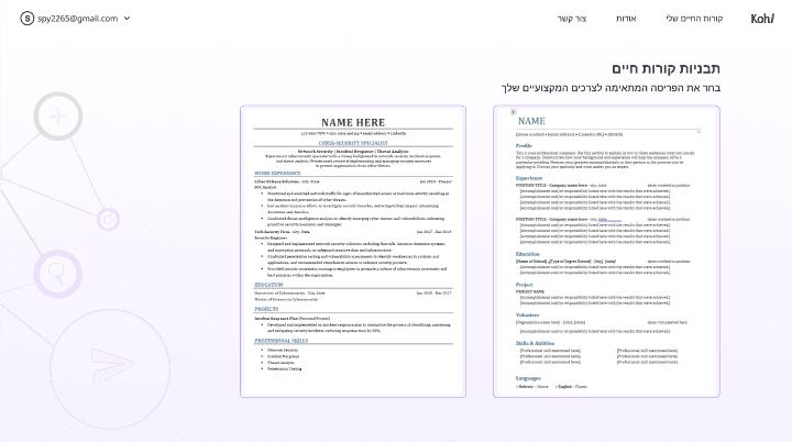 נתינת בחירת תבנית של קו”ח שמותאמת למערכות ATS ולחברות הייטק