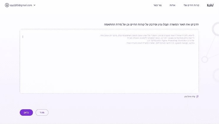המערכת מאפשרת גם להדביק משרה ספציפית ולקבל קורות חיים מותאמים בדיוק לדרישות שלה.